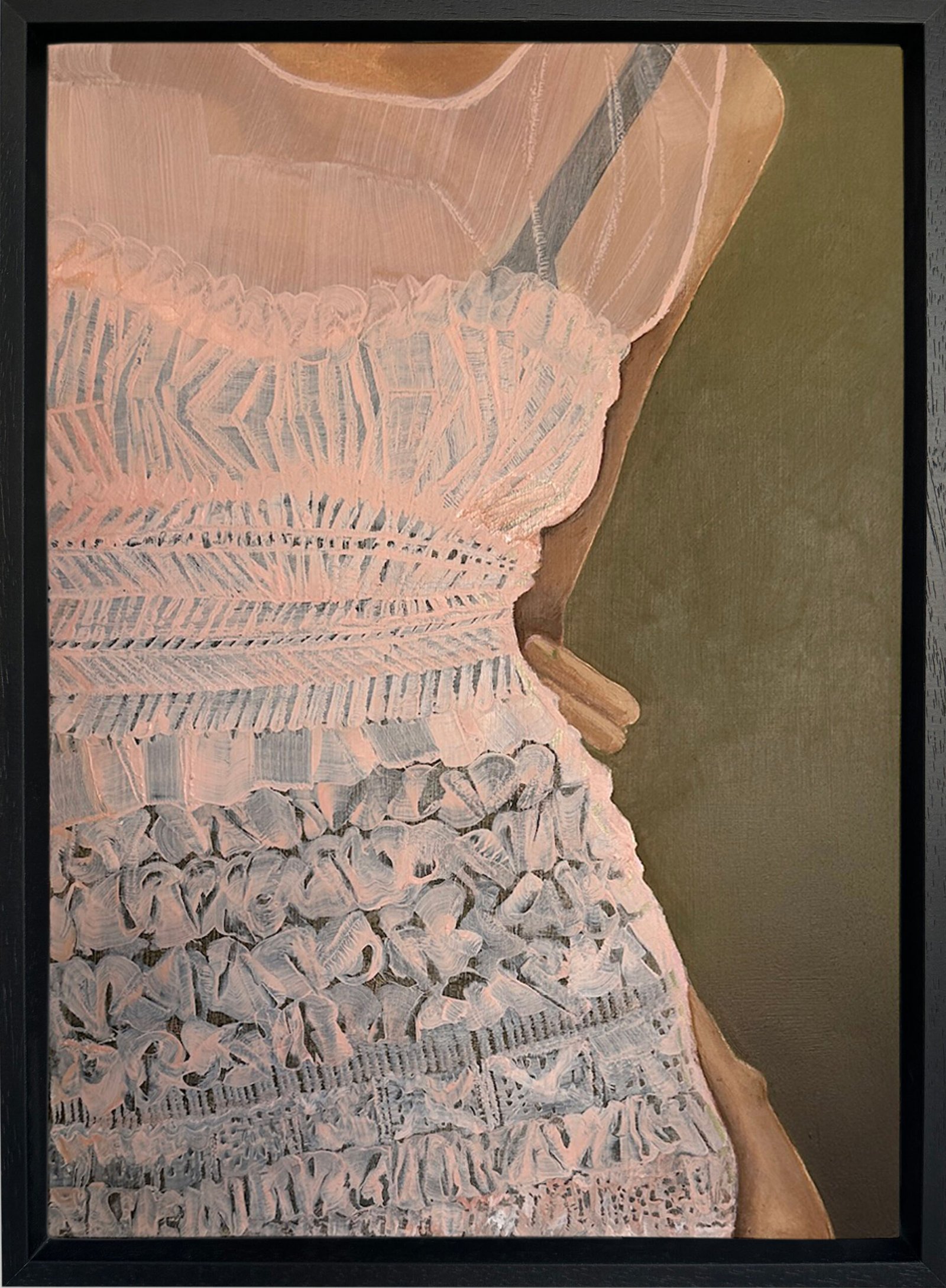 Invitation Only, 2025, oil on panel board, 29.7cm w x 42cm h x 2cm d, black wooden frame